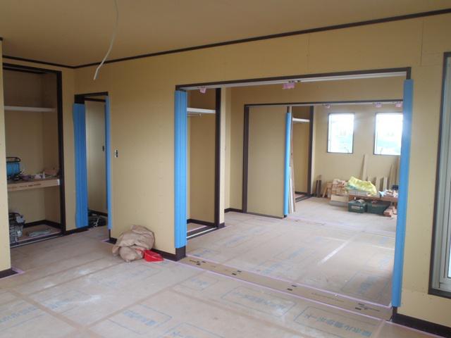 木工事(1階床フローリング貼り、壁ボード貼り、ドア開口枠取付、