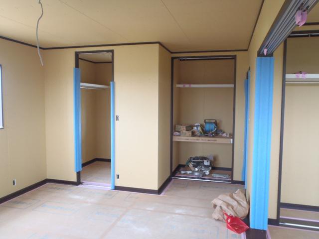 木工事(壁ボード貼り、ドア開口枠取付、棚類取付、幅木・