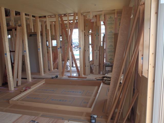 ☆先週の工事☆ 木工事(外壁下地材打ち、1階天井ボード貼り、1階床フローリング 貼り、ドア開口枠組み立て、他) 外装下地検査 ユニットバス据え付け ☆今週の予定工事☆ 木工事(2階フローリング貼り、ドア開口枠組立て、外壁下地材 打ち、他)