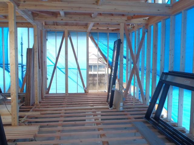☆先週の工事☆ 木工事(1階床下地、ベランダ下地、サッシ開口・サッシ取付、 他) ☆今週の予定工事☆ 木工事(ベランダFRP防水、サッシ開口・サッシ取付、中間検査 準備、他)