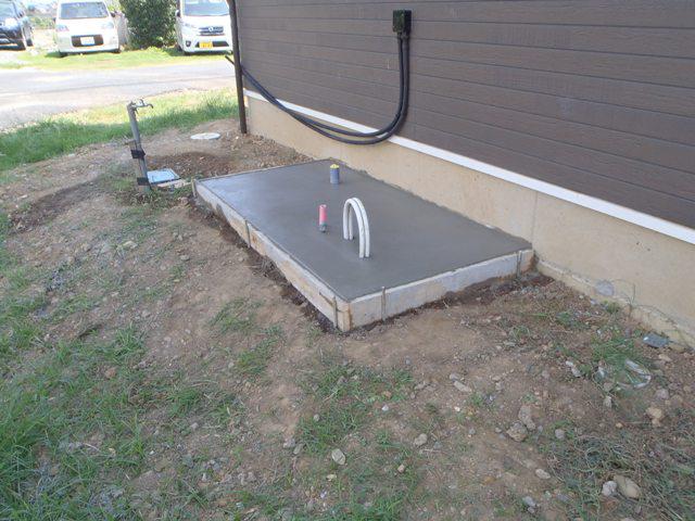 ・外部エコキュートベースコンクリート打ち、勝手口階段、玄関・ポーチタイル