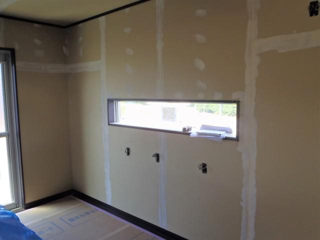 ・内装仕上げ工事へと入り、天井・壁プラスターボードのジョイント部・