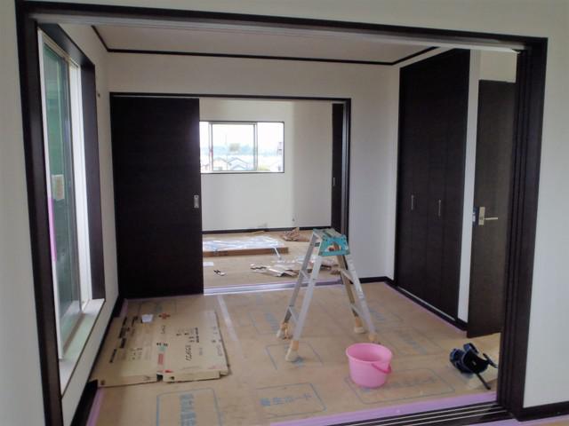 ☆先週の工事☆ 内装仕上げ工事(クロス貼り、CFシート張り、他) ☆今週の予定工事☆ 電気スイッチ・コンセントプレート類取付、配電盤納め、他 衛生器具付け 浄化槽設置