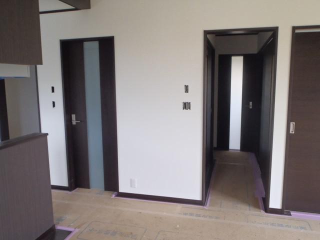 ・電気コンセント・スイッチ類プレート取付を進めています。 照明器具・電気盤納めましたら太陽光パワコン・接続箱設置し 中電連携を行います。 ・衛生器具・エコキュート据え付けし通水試験を予定しています。