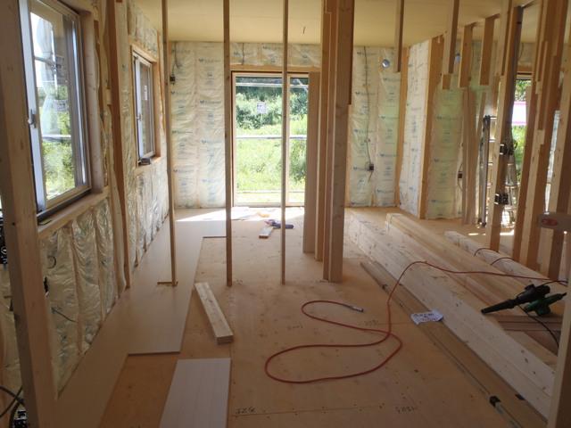 ☆先週の工事☆ 木工事(床フローリング貼り、窓枠組み立て、ドア開口枠組立 他) 道路拡張工事 ☆今週の予定工事☆ 木工事(床フローリング貼り、窓枠組立・ドア開口枠組立、他) 外壁工事(角コーナー取付、平板サイディング貼り、他)