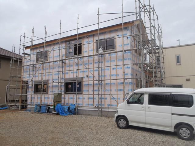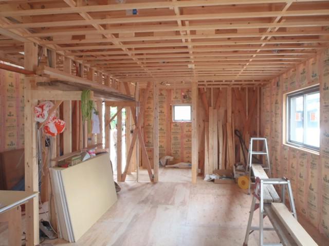 ☆先週の工事☆ 木工事(軒天ボード貼り、壁断熱材入れ、天井ボード貼り、他) 床断熱シート配線、他 ☆今週の予定工事☆ 木工事(1階天井ボード貼り、床フローリング貼り、窓枠とり付け、 ドア開口枠取付、他)