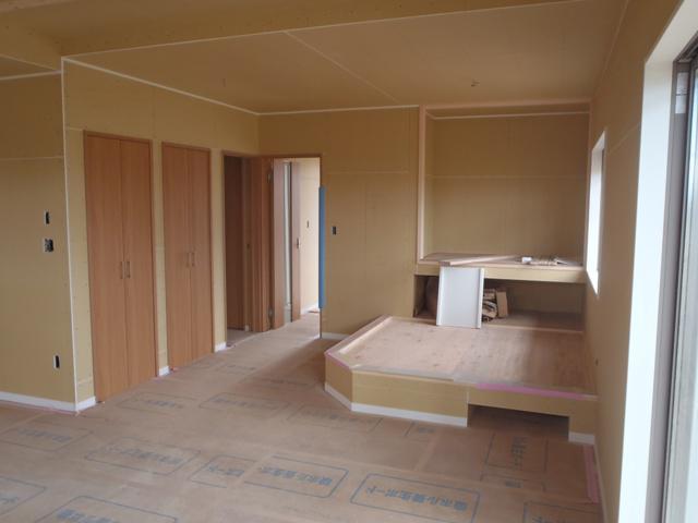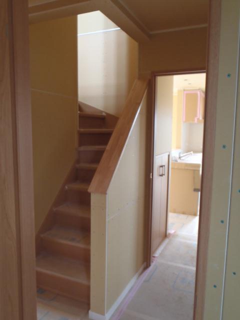 ・内部木工事、幅木・回し縁取付、建具吊り込みを行い完了と なりました。棟梁の鈴木さんに木工事、腕を揮って頂きまと めて頂きました。 ・外部工事、軒天塗装を行い、派風鼻隠し板金納め・軒樋・縦樋 掛けを進めています。板金完了後換気扇フード、TVアンテナ 取付を予定しています。