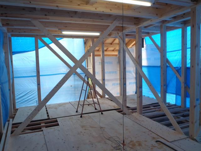 ☆先週の工事☆ 木工事(筋カイ・間柱入れ、他) ☆今週の予定工事☆ 木工事(構造金物取付、制振ダンパー取付、窓サッシ開口造作 サッシ取付、他)