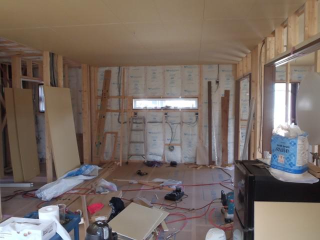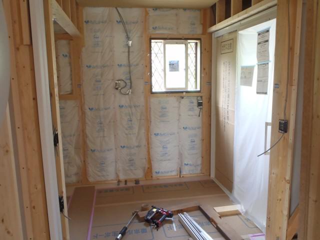 プラスターボード貼りを進めています。 各部屋が間仕切られて