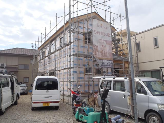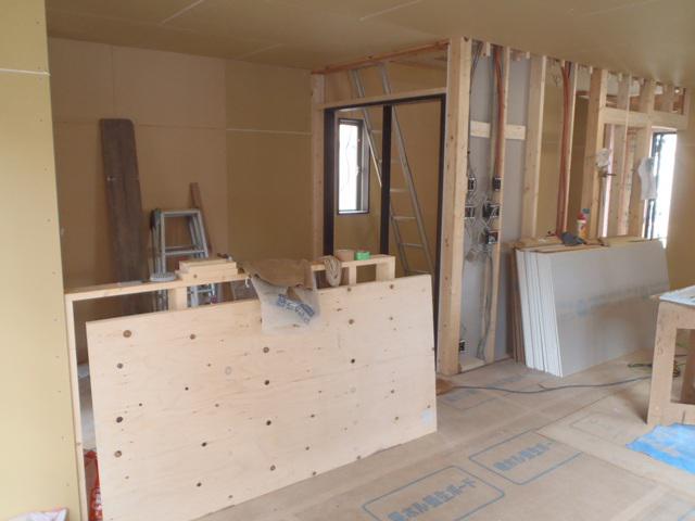 ・内部木工事1階ドア開口枠取付を取付ながら壁下地合板及び プラスターボード貼りが進んでいます。 ・2階同様、各部屋が間仕切られていきます。