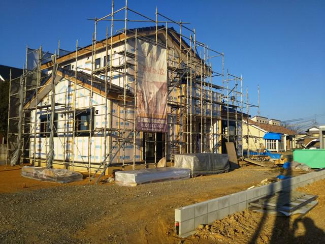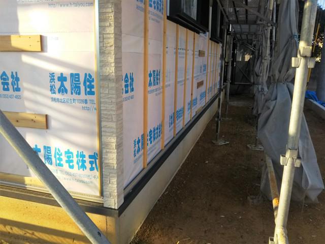 ・木工事、外壁下地、軒天下地及び軒天ボード貼りを終え、