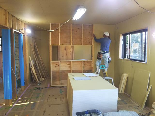 内部造作・キッチン下地を行い、5日システムキッチン据え付けを