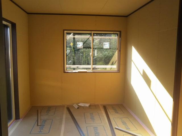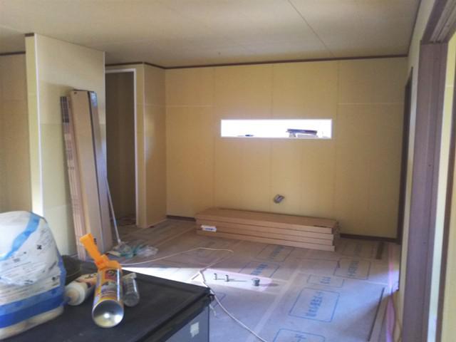 ・内部木工事、壁ボード類を貼り終え回し縁・幅木材取付を