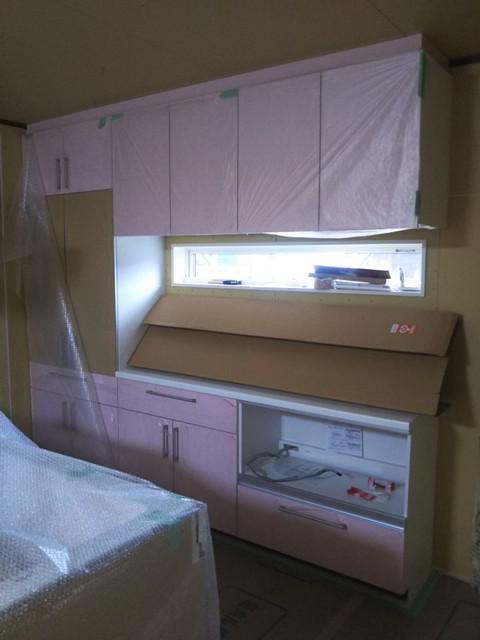 ☆先週の工事☆ 木工事(幅木・回し縁取付、建具吊、可動棚取付、他) 板金・樋掛け キッチン据付け 外部換気フード、電力引込口 ☆今週の予定工事☆ 木工事(建具吊り込み、他) 太陽光パネル設置 内装仕上げ工事(クロスパテ・クロス貼り、他)