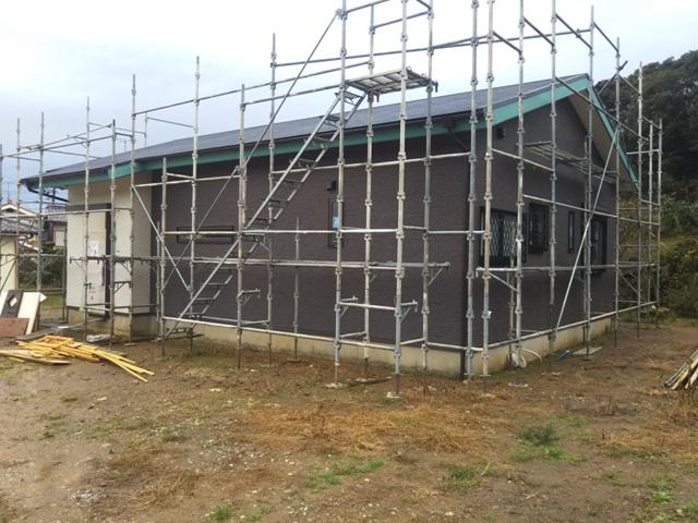 ・内部木工事、幅木・回し縁取付を行い、残す所可動棚加工 取付、建具吊込みを行い完了となり内装仕上げ工事へと進め ます。外部工事、派風幅隠し板金、樋掛けを終え換気フード 電力引込口金具取付、太陽光パネル設置を予定しています。 パネル設置後外部足場解体となります。