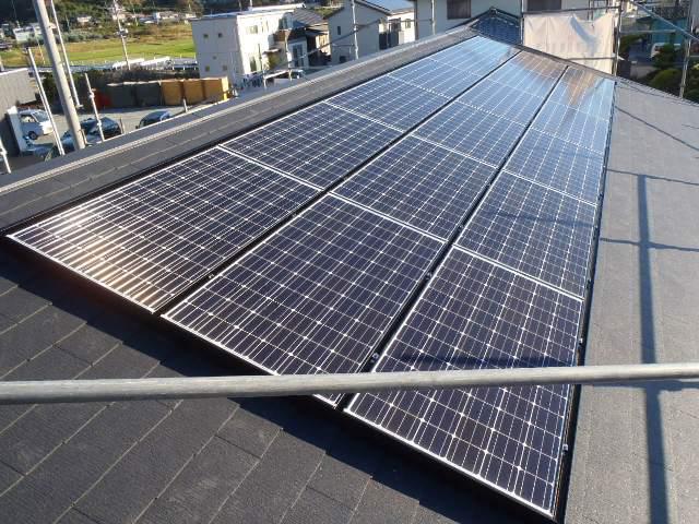・太陽光パネルが設置され外部足場関連の工事が完了し足場