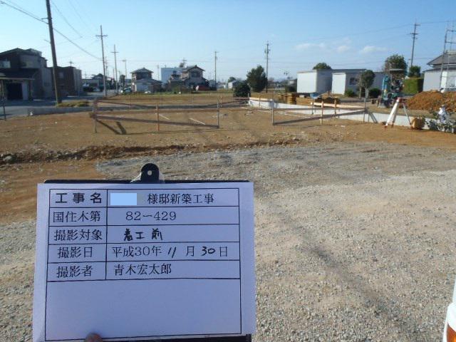 ・28日 確認申請を受け、基礎工事に着手しました、建物 基礎の基準となる位置、高さ出し(丁張)を行い、掘削作業 へと入りました。