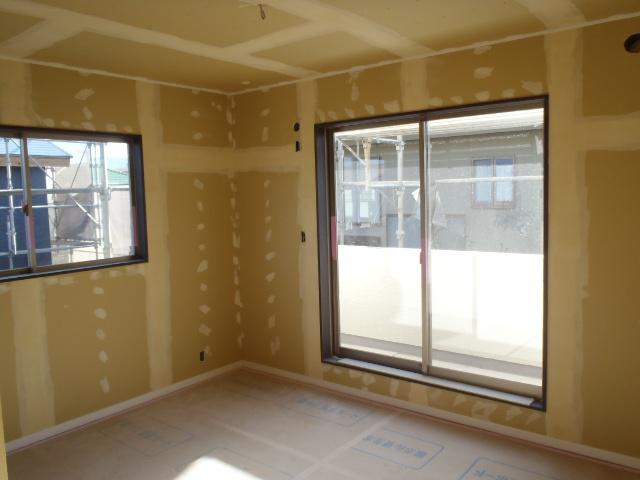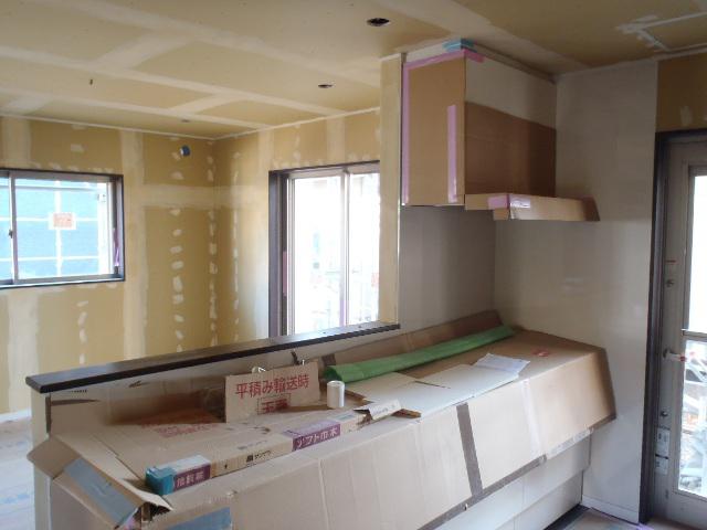 ・外部工事、軒天塗装を終え、板金・樋掛けを進めています、 換気扇フード・TVアンテナ取付を終えましたら外部足場解体予定 しています。 ・内部仕上げ工事、クロス下地・パテ入れを ビス頭・ボードジョイント部に 入れクロス材が綺麗に張れる様下地処理進めています。