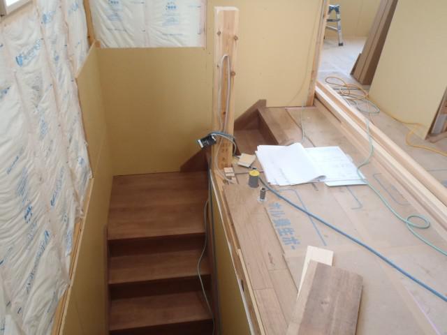 窓枠取付ながら壁下地・ボード貼りを進めています、階段造作