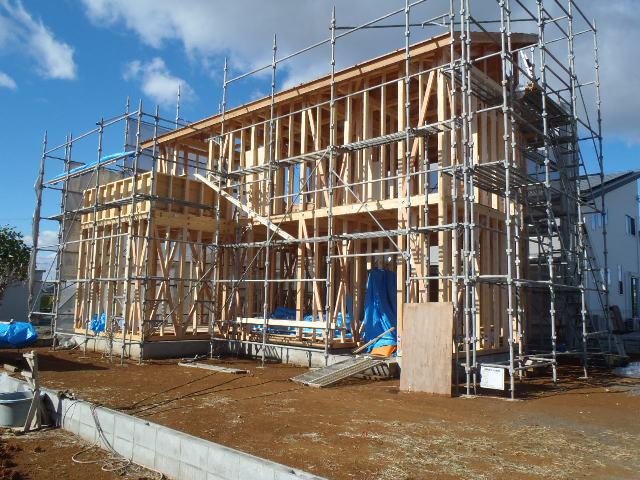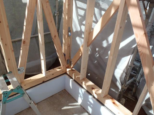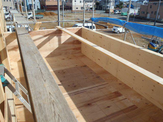 木工事、構造金物の取付を終え、ベランダ木下地、FRP下地を