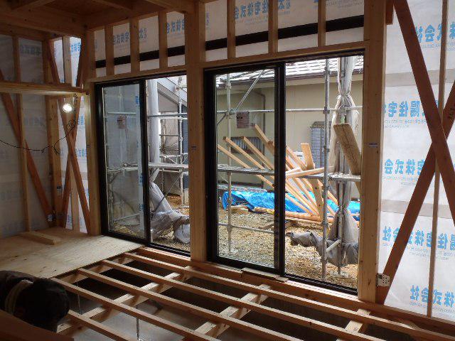 木工事(床断熱材入れ、床下地合板本締め、他)