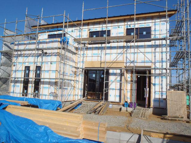☆先週の工事☆ 木工事(外壁下地材打ち、軒天下地組み及び軒天ボード貼り、 壁断熱材入れ、床フローリング貼り、他) ☆今週の予定工事☆ 木工事(軒天下地組み及び軒天ボード貼り、床フローリング貼り、 窓枠取付、壁ボード貼り、他)