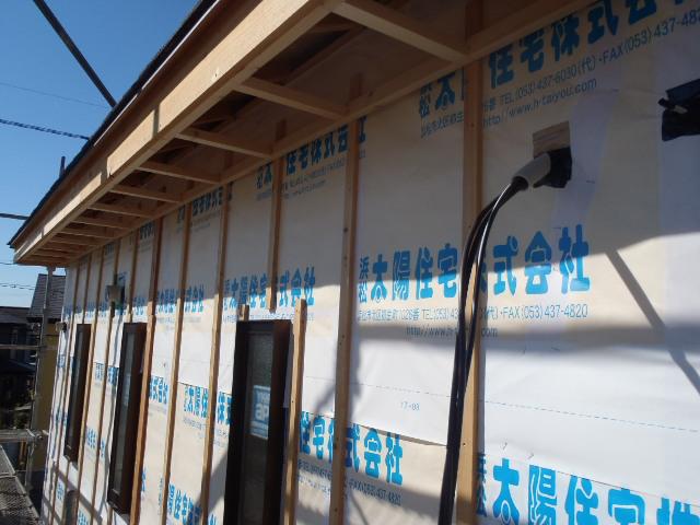 行いました、外部軒天下地組み・軒天ボード貼りを行い、内部