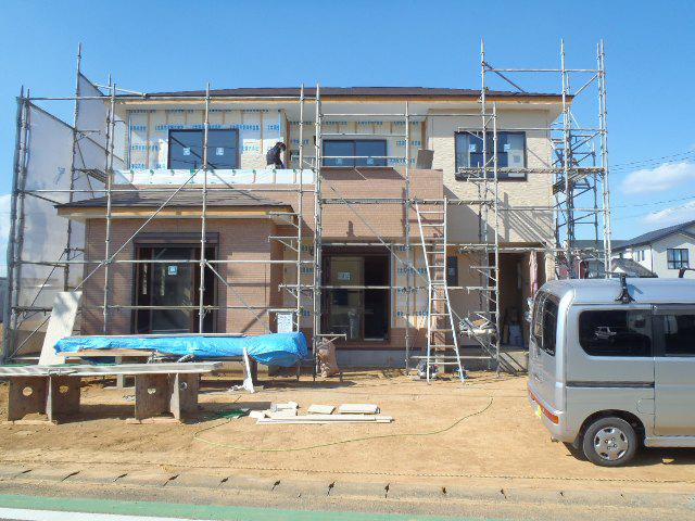 ング材を張り進め9割程まで張り進んでいます、サイディング