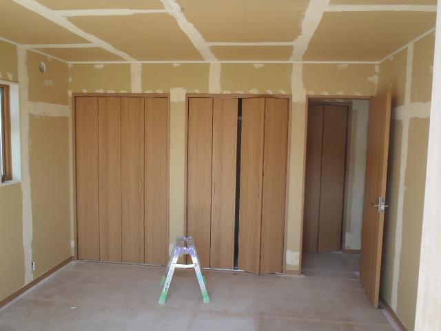 ☆先週の工事☆ 木工事(建具吊り込み、片付け) 内装工事(クロス下地、 クロスパテ、クロス貼り、他) 外部換気フード類、器具付け 板金工事(破風鼻隠し、樋掛け) ☆今週の予定工事☆ TVアンテナ取付 内装工事(クロス貼り、クッションシート 貼り、他)