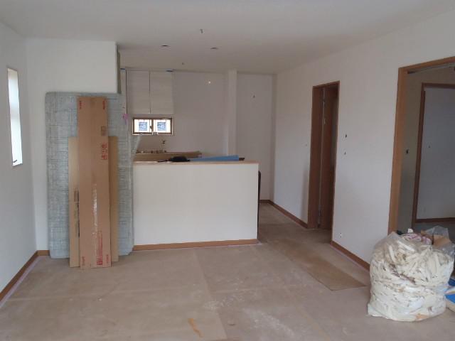 内部内装仕上げ工事、クロス貼りを終え、クッションシート張りを行い完了となります。