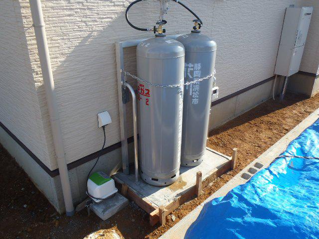 ・内部製作建具・階段手摺を取付、ハウスクリーニング・検査機構完了 検査を受けました。 畳入れ、網戸入れ・サッシ調整、外部ボンベ 架台設置を終えましたが基礎幅木塗り、 雨の影響にて行えて いません。 連休開け7日より工事入ります。