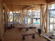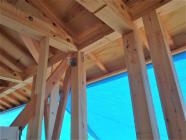 ・木工事、間柱・筋カイ入れながら構造金物取付、制振ダンパー取付 を進めています。 窓サッシが搬入され取り付けにも取り掛かります。 ・下屋根 平板瓦葺き・役物瓦葺きを行いました、大屋根へと 進めて行きます。