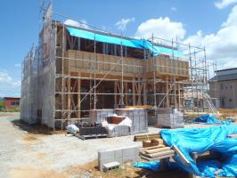 ☆先週の工事☆ 木工事(1階筋カイ・間柱入れ、窓開口、構造金物取付、他) 屋根工事(下屋ルーフィング敷き、瓦荷揚げ、瓦桟打ち、 瓦葺き) ☆今週の予定工事☆ 木工事(構造金物取付、構造面材取付、窓サッシ取付、 ベランダ下地造作、他) 屋根工事(瓦荷揚げ、瓦桟打ち、瓦葺き)