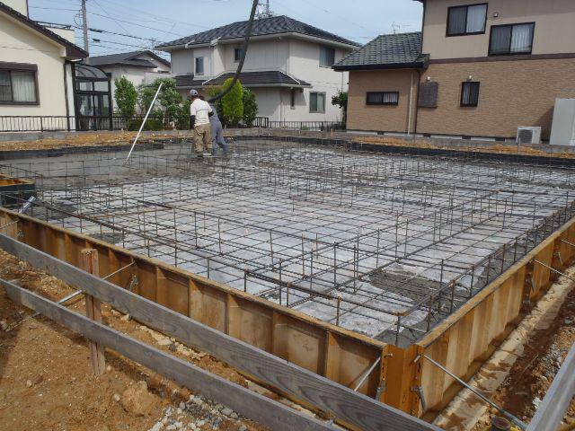 ☆先週の工事☆ 基礎工事(鉄筋組み、ベースコンクリート打ち、立ち上り部型枠 組み、アンカーボルト類設置、他) 保証機構、配筋検査 ☆今週の予定工事☆ 基礎工事(立ち上り部コンクリート打ち、型枠解体、埋め戻し 整地、他)