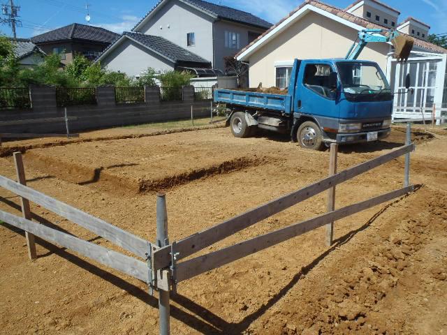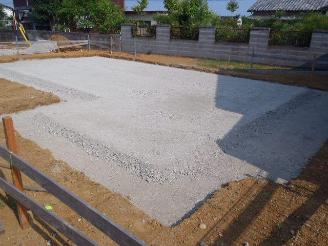 ・基礎工事、砕石地業を終え土間シート敷き、ベース型枠組み、