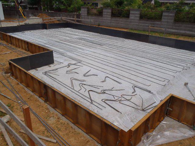 との間隔等)を受け1回目のコンクリート打設(ベースコン)を行い、
