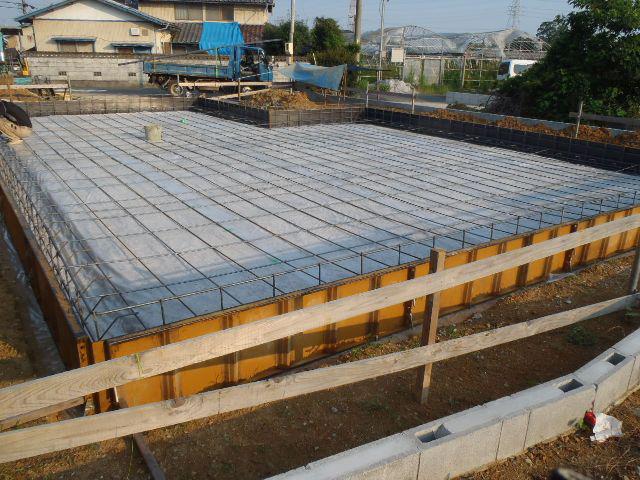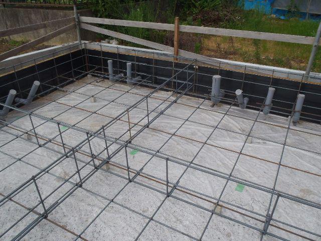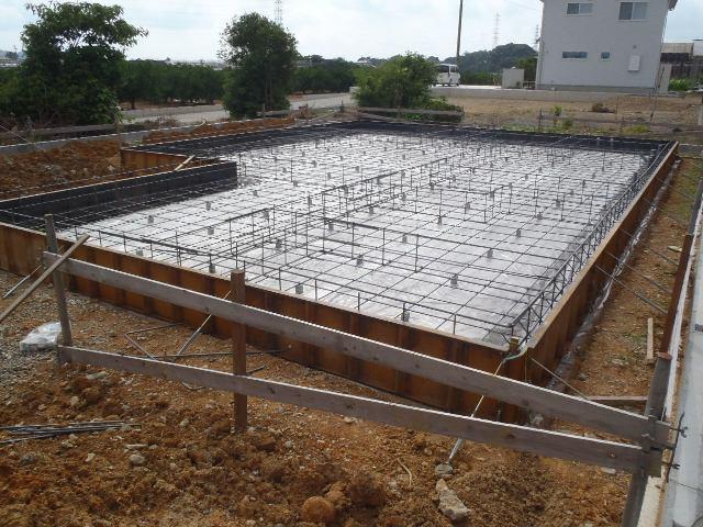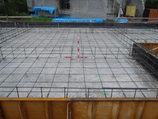型枠と鉄筋との間隔等確認)を受けベースコンクリートを打ちました。