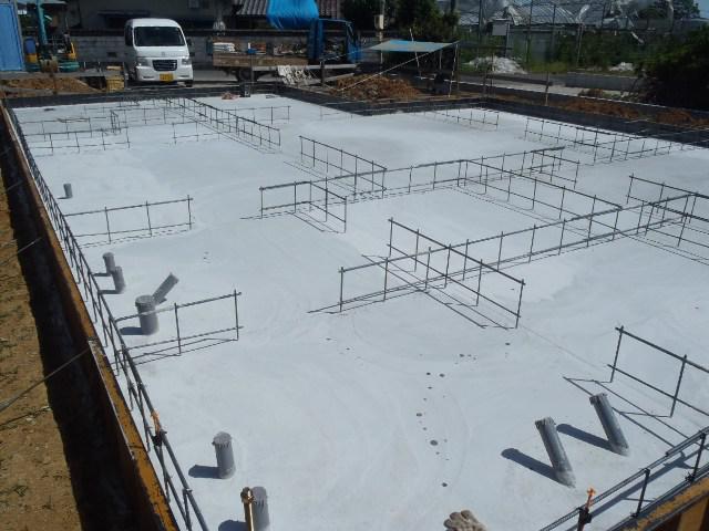 ☆先週の工事☆ 基礎工事(立ち上り部型枠組み、アンカーボルト類設置、 コンクリート打設・天端レベラー、タイル下地コンクリート、他) ☆今週の予定工事☆ 基礎工事(型枠解体、埋め戻し整地、他)