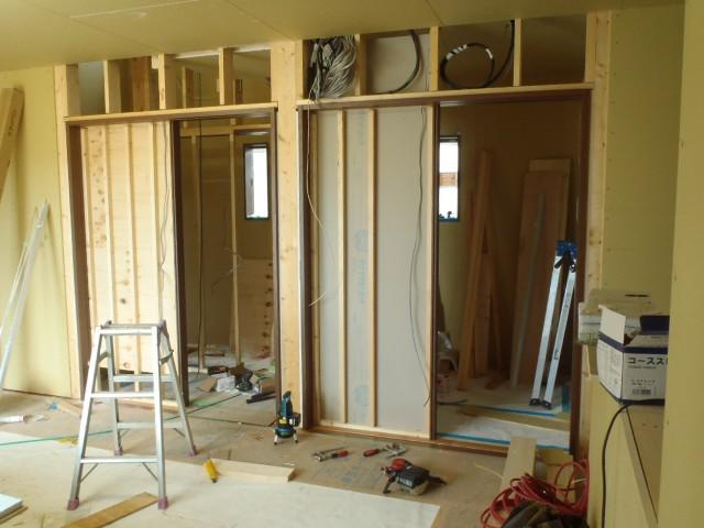 ☆先週の工事☆ 木工事(壁ボード貼り、ドア開口枠取付・取付、他) 太陽光配線 ☆今週の予定工事☆ 木工事(壁ボード貼り、ドア開口枠組立・取付、固定棚板 取付、階段造作、他)
