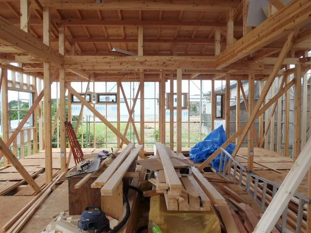 木工事(1階床合板本締め、筋カイ・間柱入れ、