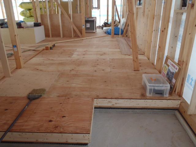 木工事(床断熱材入れ、床下地合板本締め、天井下地組み、