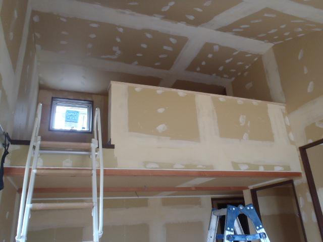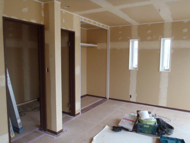 2階クロス下地、クロスパテ処理を行いクロス張り進めています。