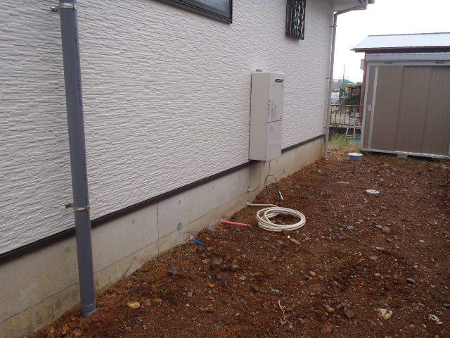 ・外部工事、ガスボイラー設置、玄関・ポーチタイル下地、基礎幅木