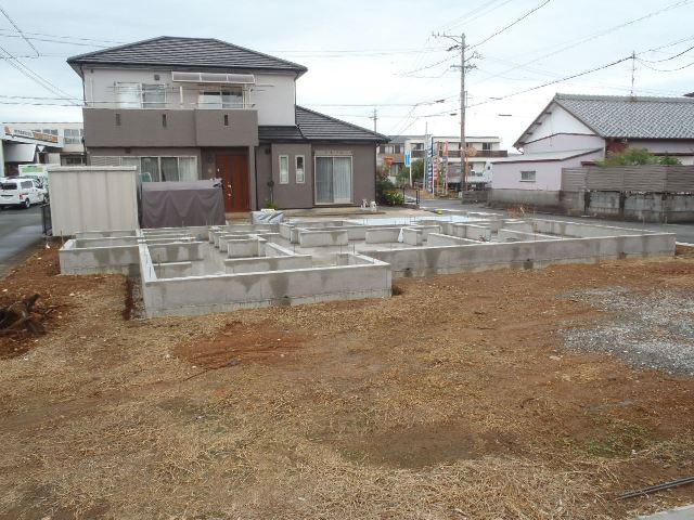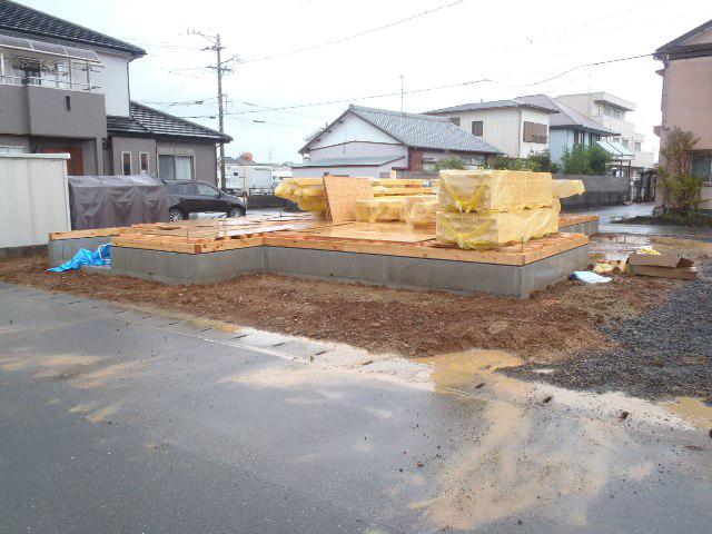 ・基礎工事、埋め戻し整地、タイル下地コンクリート打ちを行い完了と