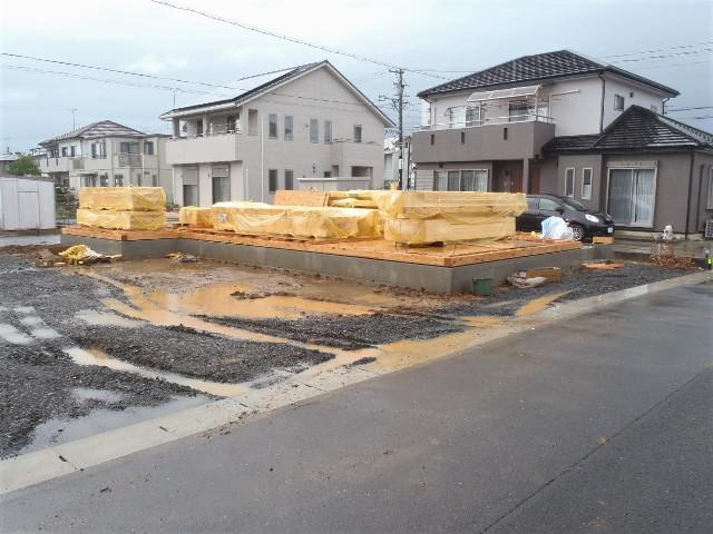 床下地組み、上棟準備) 柱・梁・構造材、下地木材搬入