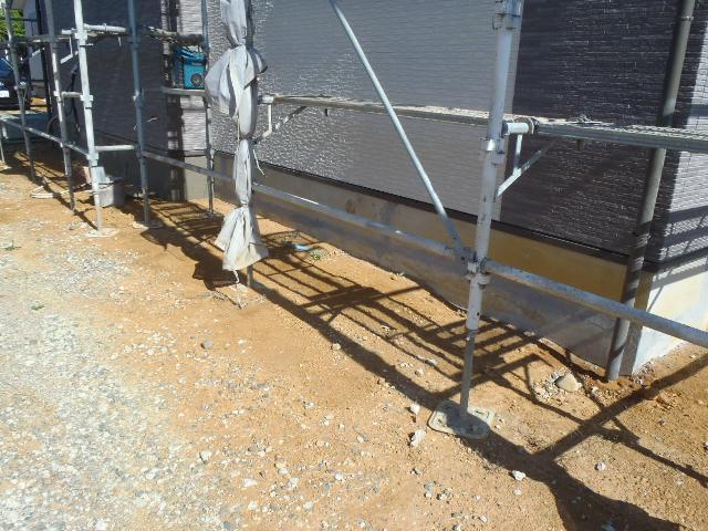 末解体となります、基礎幅木塗り、外壁吹付塗装も進めて