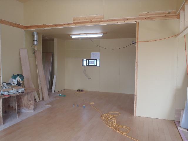 木工事(床フローリング貼り、床養生敷き、壁下地・プラスターボード