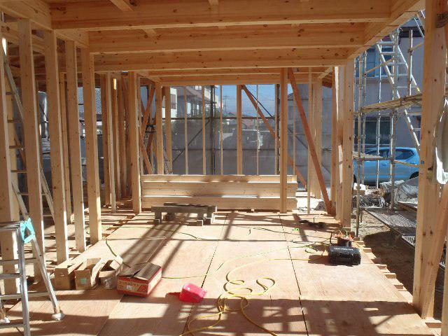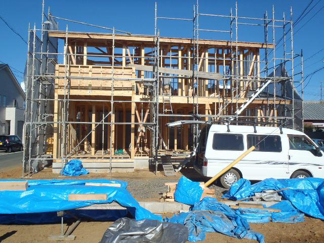 ☆先週の工事☆ 木工事(筋カイ・間柱入れ、構造金物取付、他) 下屋根、下地シート葺き) ☆今週の予定工事☆ 木工事(構造金物取付、窓開口造作、ベランダFRP防水、 他)