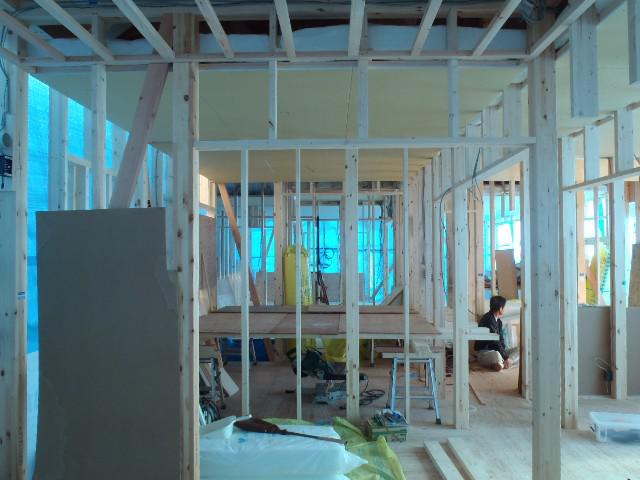 ☆先週の工事☆ 木工事(天井下地組み、天井断熱材入れ及びプラスターボード 貼り、他) 内部電気配線・配管、換気ダクト工事 ☆今週の予定工事☆ 木工事(天井下地組み、天井断熱材入れ及びプラスターボード 貼り、窓サッシ取付、他)