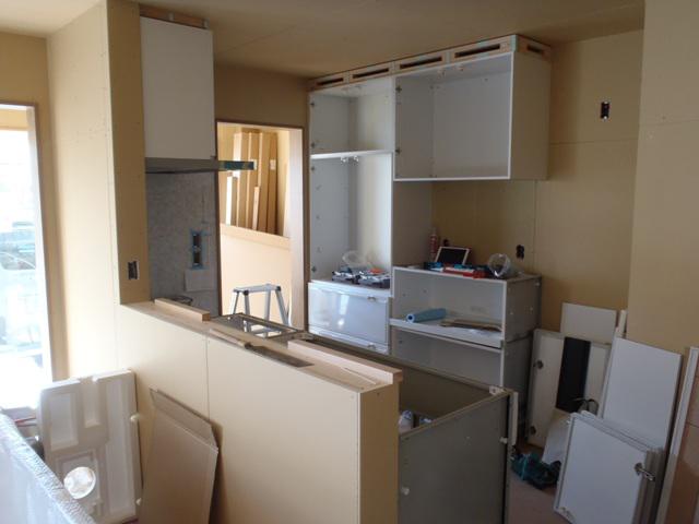 30日システムキッチン据付行いました、養生をしてありますので